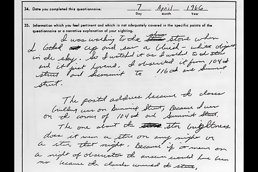 And then there are the “Unidentified Aerial Phenomena Records (UAP),” a “sanitized version of Project Blue Book case files on sightings of unidentified flying objects from 1947 to 1969.”