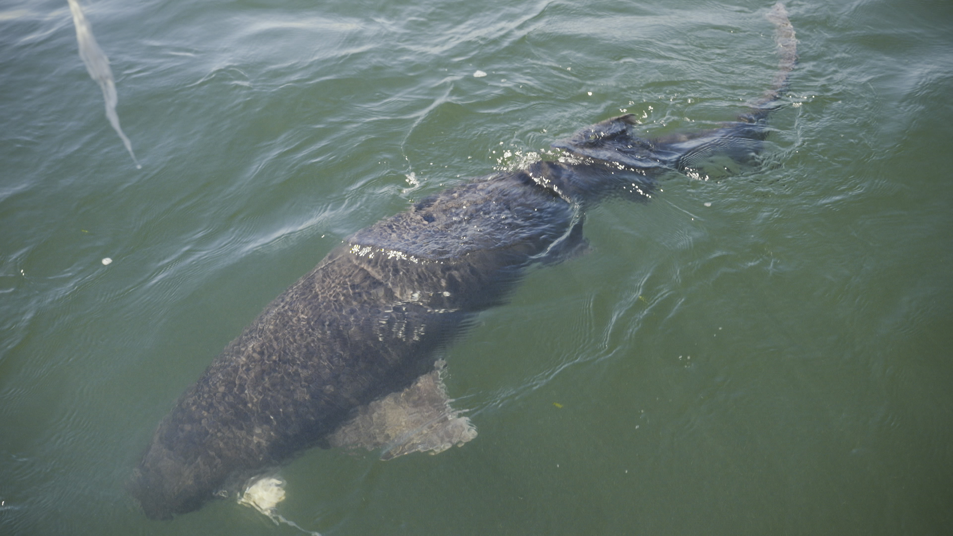 “Thank you lady!” Schulte calls as the shark swims down into the murky water.