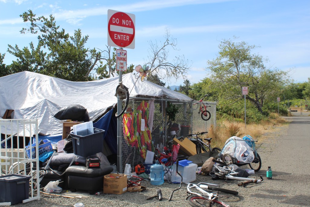 “Next thing I know, because I had no idea how having this camp would be, (or) how it would affect my life, everything under the sun was stolen,” Strumme said. “My lawn furniture was stolen, my wheel barrels were stolen, hoses were stolen. I mean you name it. I had to turn off all my outside water because they were coming and running my water and not even turning it off. I had people on my back step charging their phone and nothing was being done about it.”